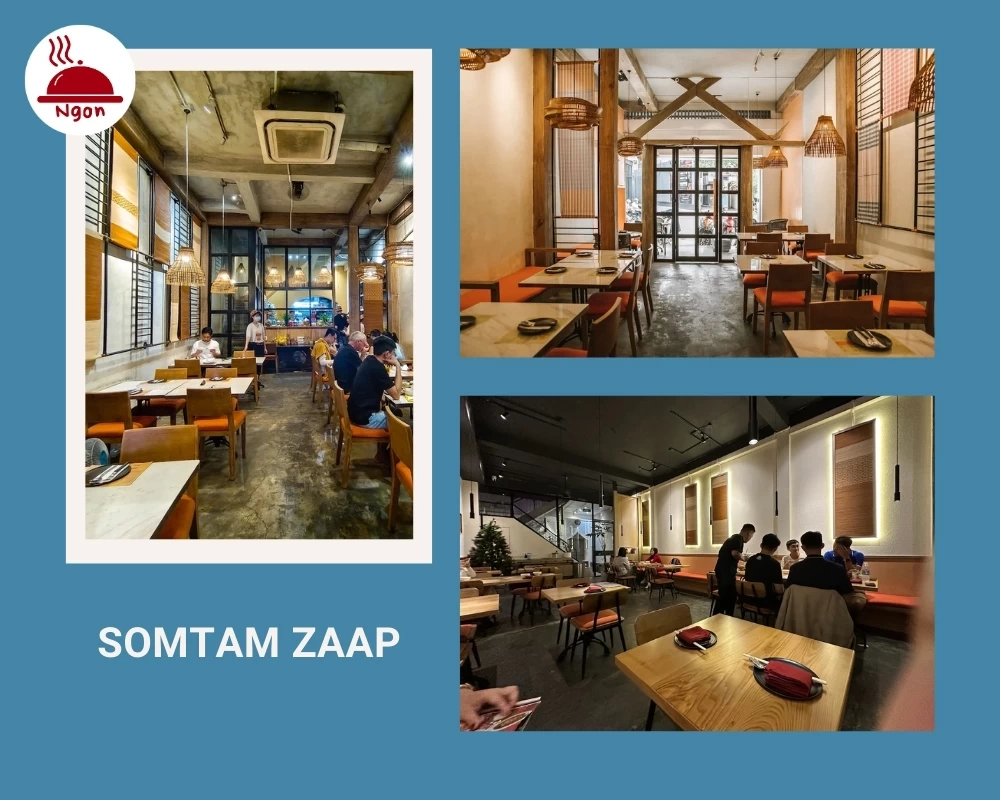 Nói đến quán Thái quận 1 thì không thể bỏ sót cái tên Somtam ZAAP. Đây là một trong những quán Thái nổi tiếng tại TP.HCM. Somtam ZAAP có không gian sạch đẹp, ấm cúng, thoải mái. Theo những đánh giá trên Google Map thì quán nấu đồ ăn khá ngon, lên món nhanh và nhân viên phục vụ thân thiện. Một điểm cộng cho Somtam ZAAP chính là quán có cả menu chay.